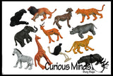 ***** Safari Animal Set includes 12 miniature toy animals. Animals replicas measure 2'' 3.5'' long and are made of plastic. This set includes: elephant, rhinoceros, hippopotamus, cheetah, tiger, lion, ostrich, gorilla, gazelle, gnu, zebra and giraffe.