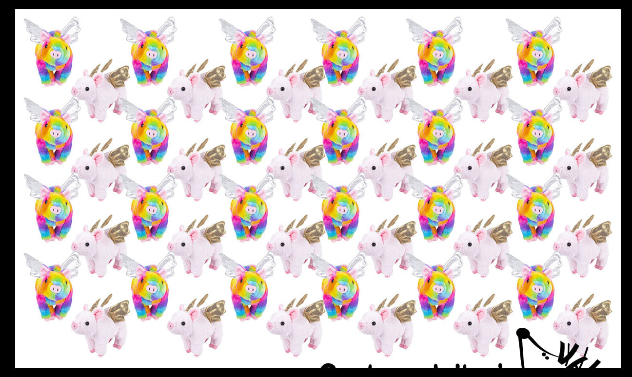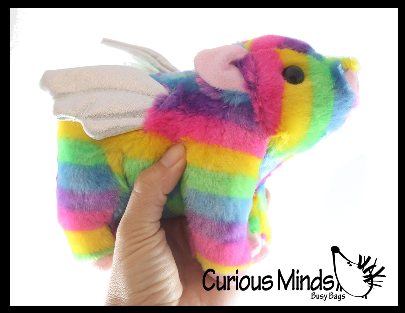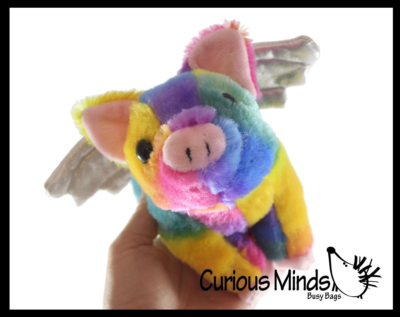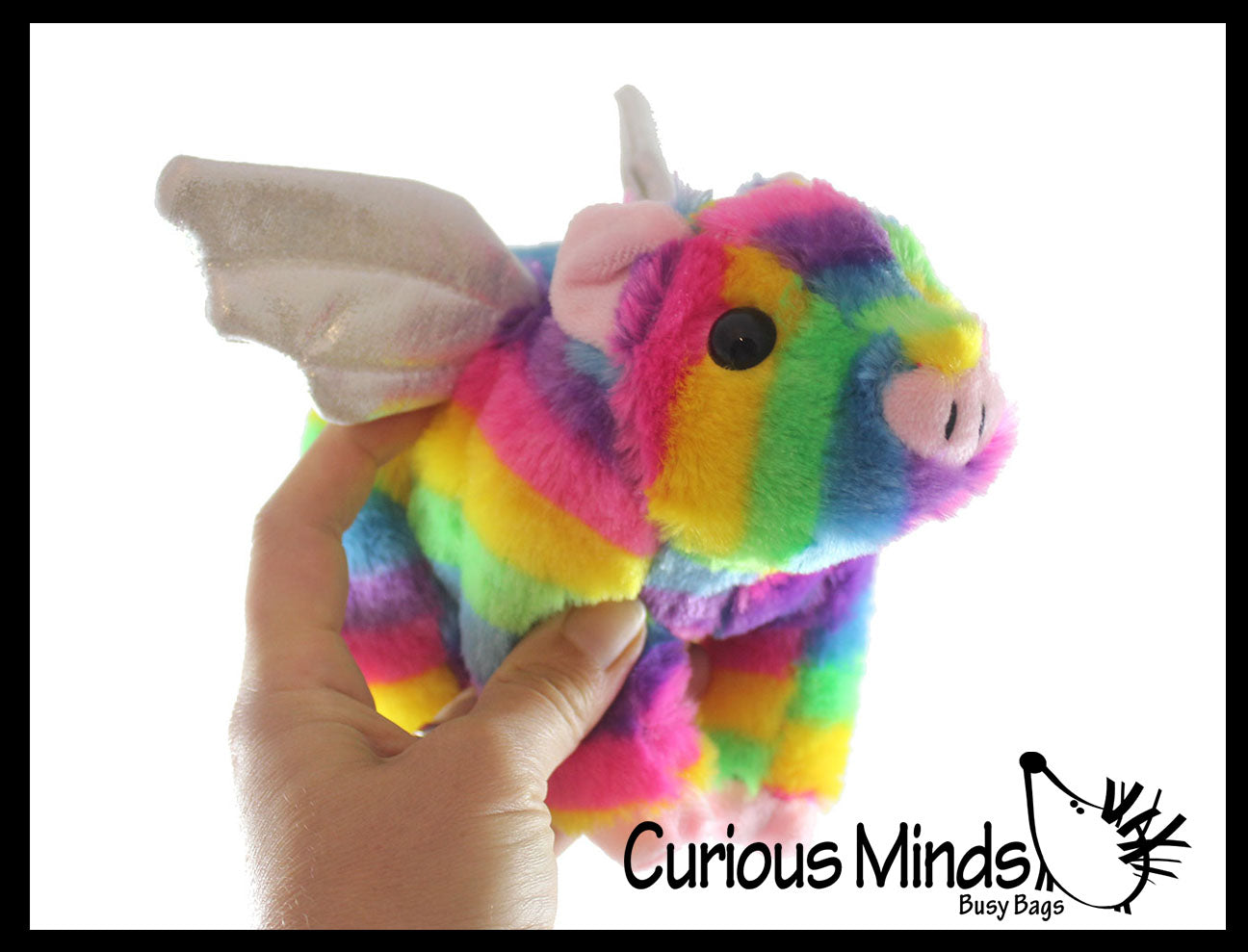 This adorable plush stuffed toy is a little piggy with fairy wings and an unicorn horn. This is simply a fun little stuffed animal for kids who like stuffed animals! Perfect gift for any piggy lover! Children and adults of all ages will love this cutie piglet for playing and cuddling. Suitable decoration for bedroom, living room, or office. You can also give it to family, friends, sons, daughters, boyfriends or girlfriends. It is 6.5" tall, 3.5" wide, and 7.5" long. They Come in 2 different colors (rainbow and pink).