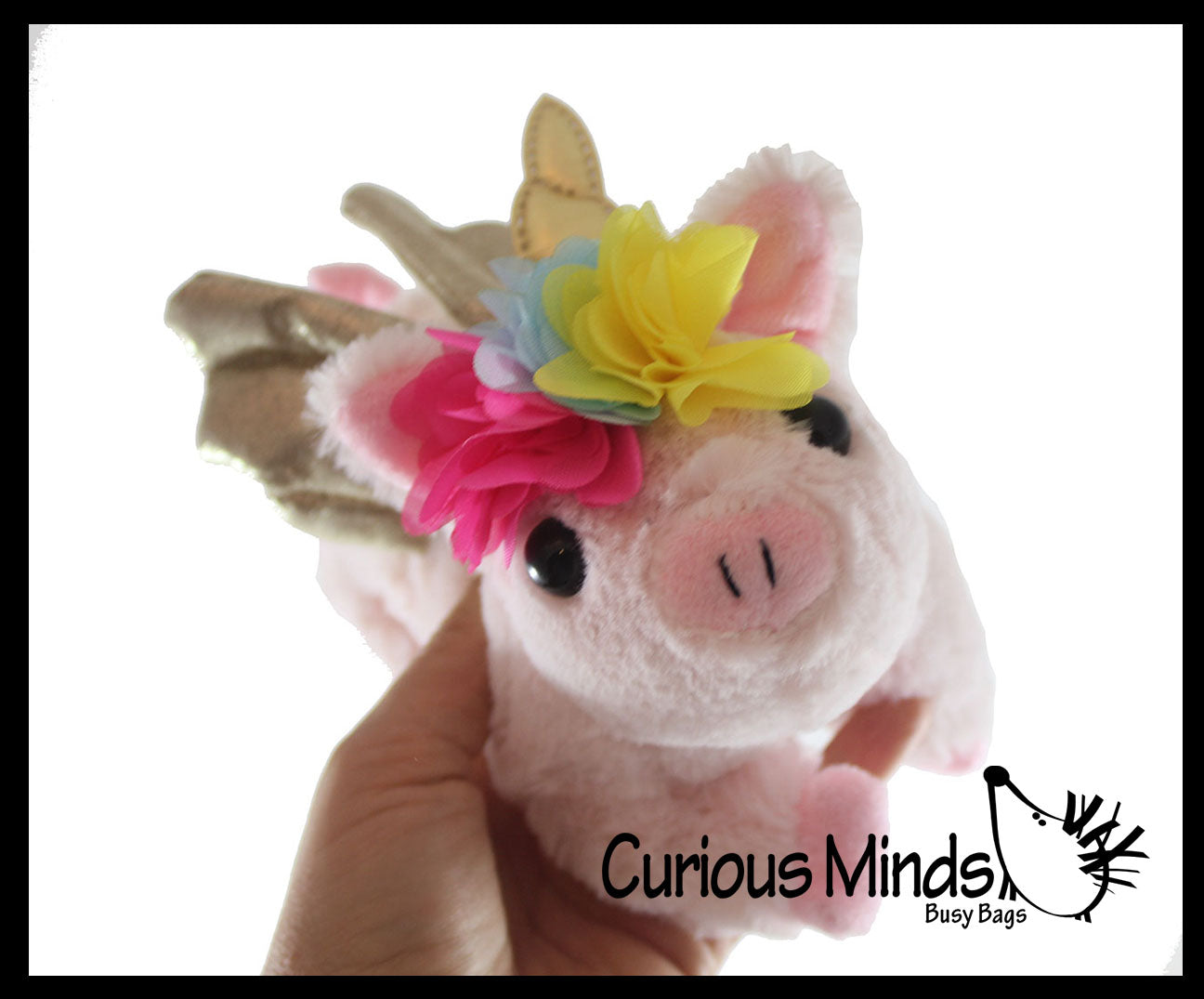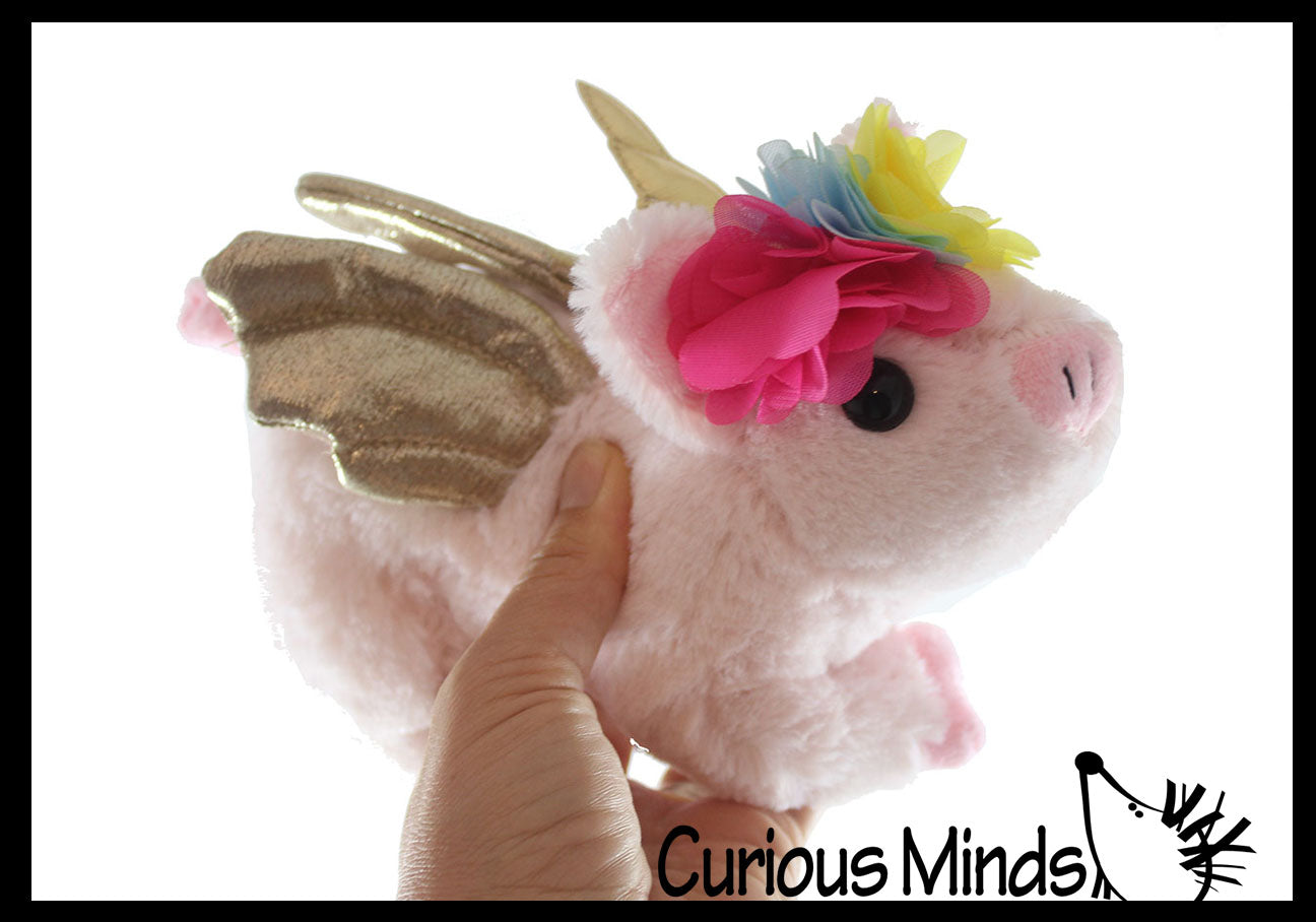 Cute Pig with Fairy Wings and Unicorn Horn Plush Stuffed Animals - Adorable Piggy Soft and Cuddly Mini Animal Plushie Plushy