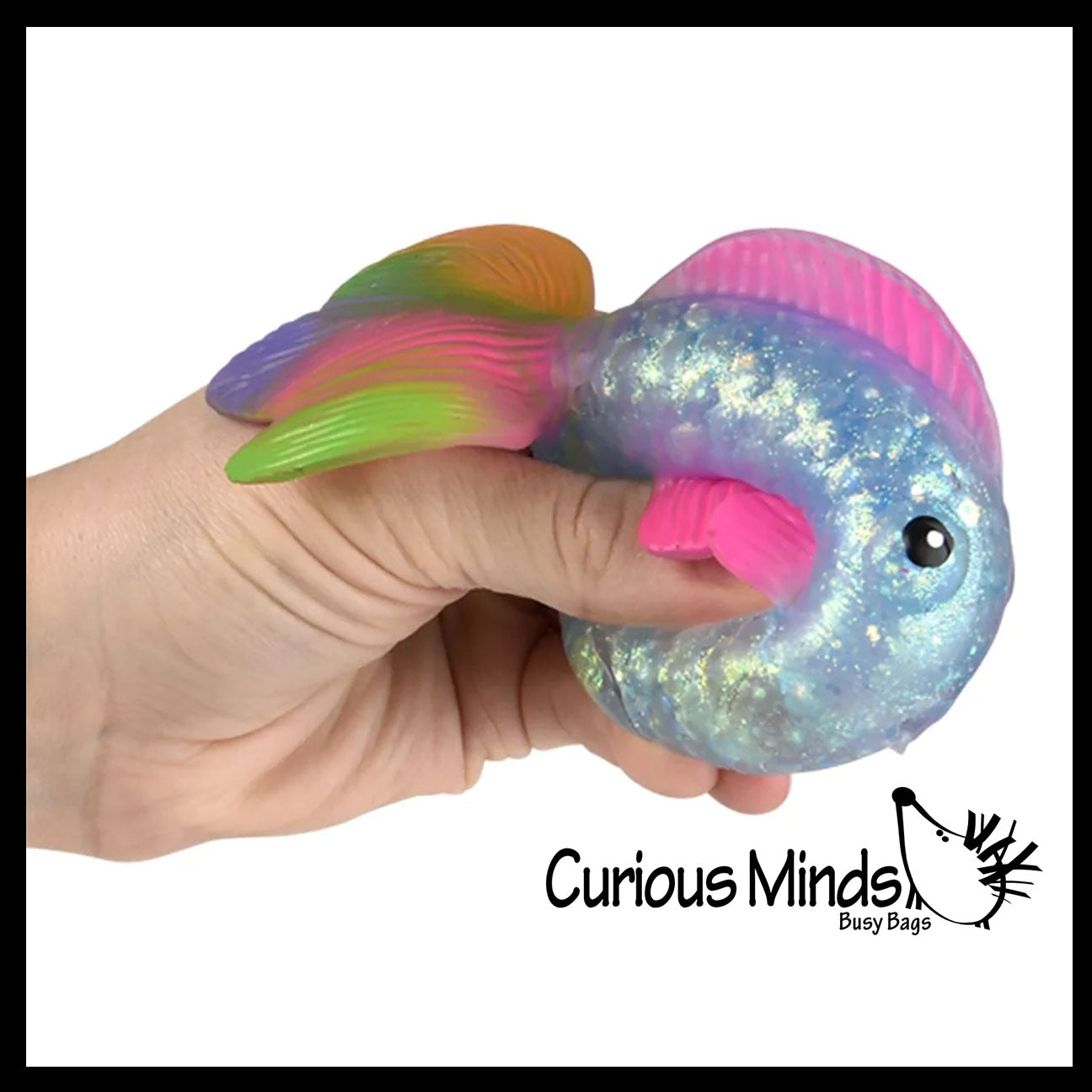 The goldfish shape style of the sugar ball is so fun to play with. These soft and flexible toys look like little fish. These little toys can be stretched gently. Aquatic animals are 2" tall, 4.5" long, and 2" thick and is wrapped in plastic. The fish comes in 4 different colors. This is a very fun stress toy that is not only calming, but it also helps build hand and finger muscles and bilateral coordination. It is beyond amazing and has a super soft dough feel. You can poke and pinch it and it will retain its shape, then slowly ooze back into a cube just like a slow rise squishy would.