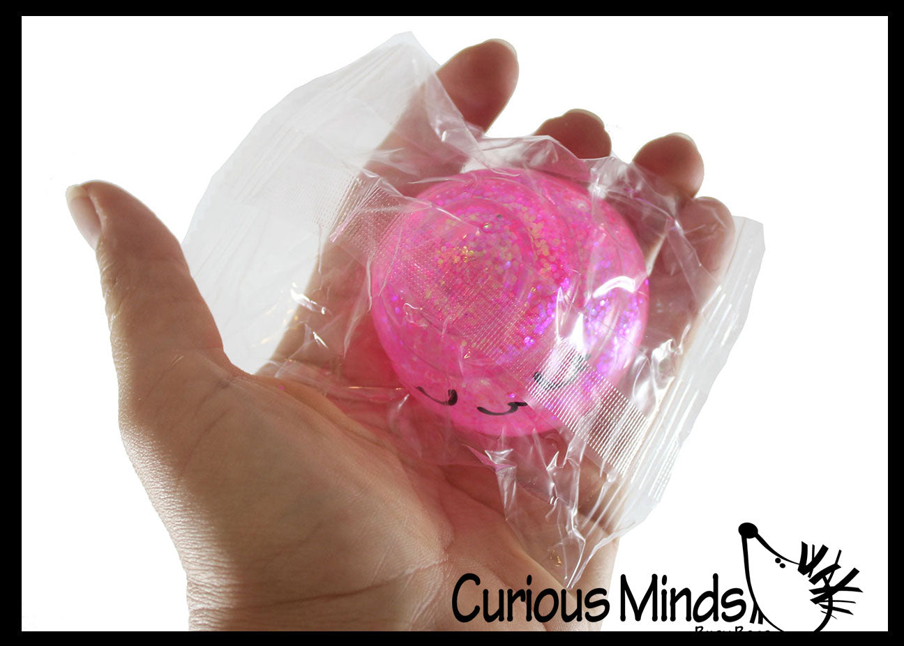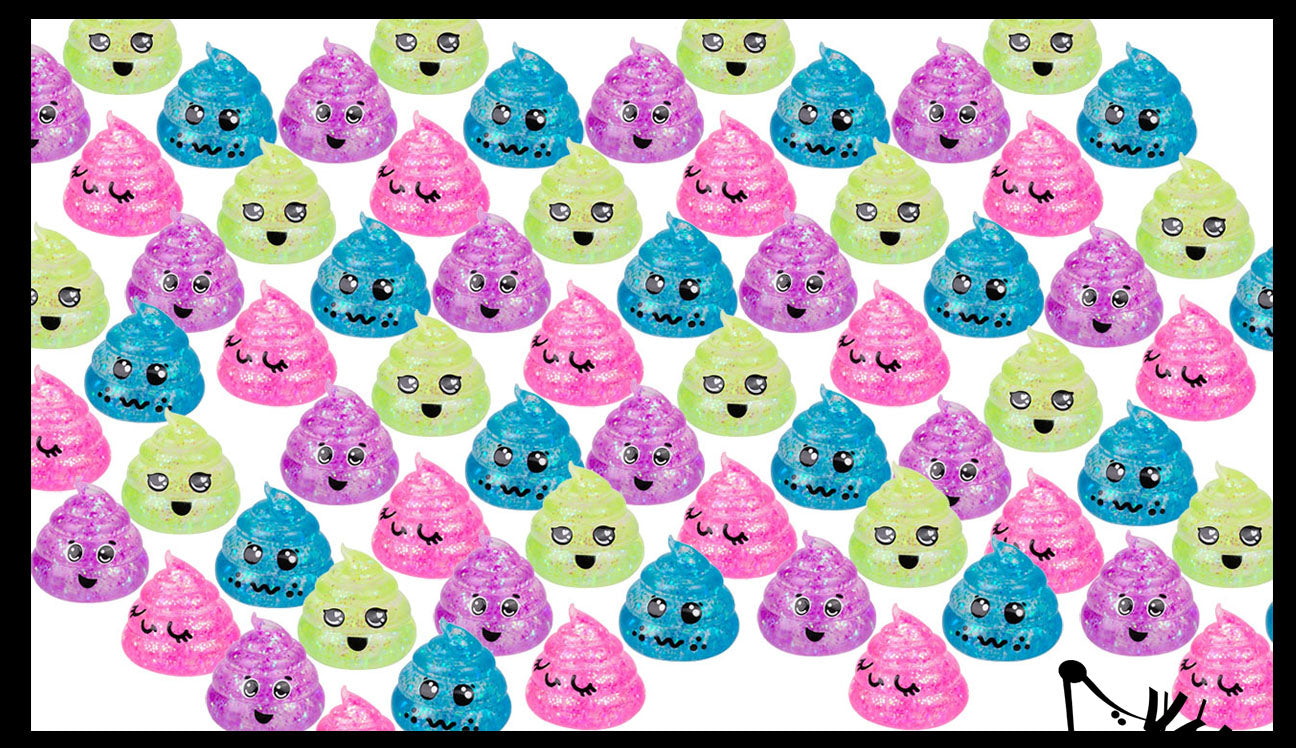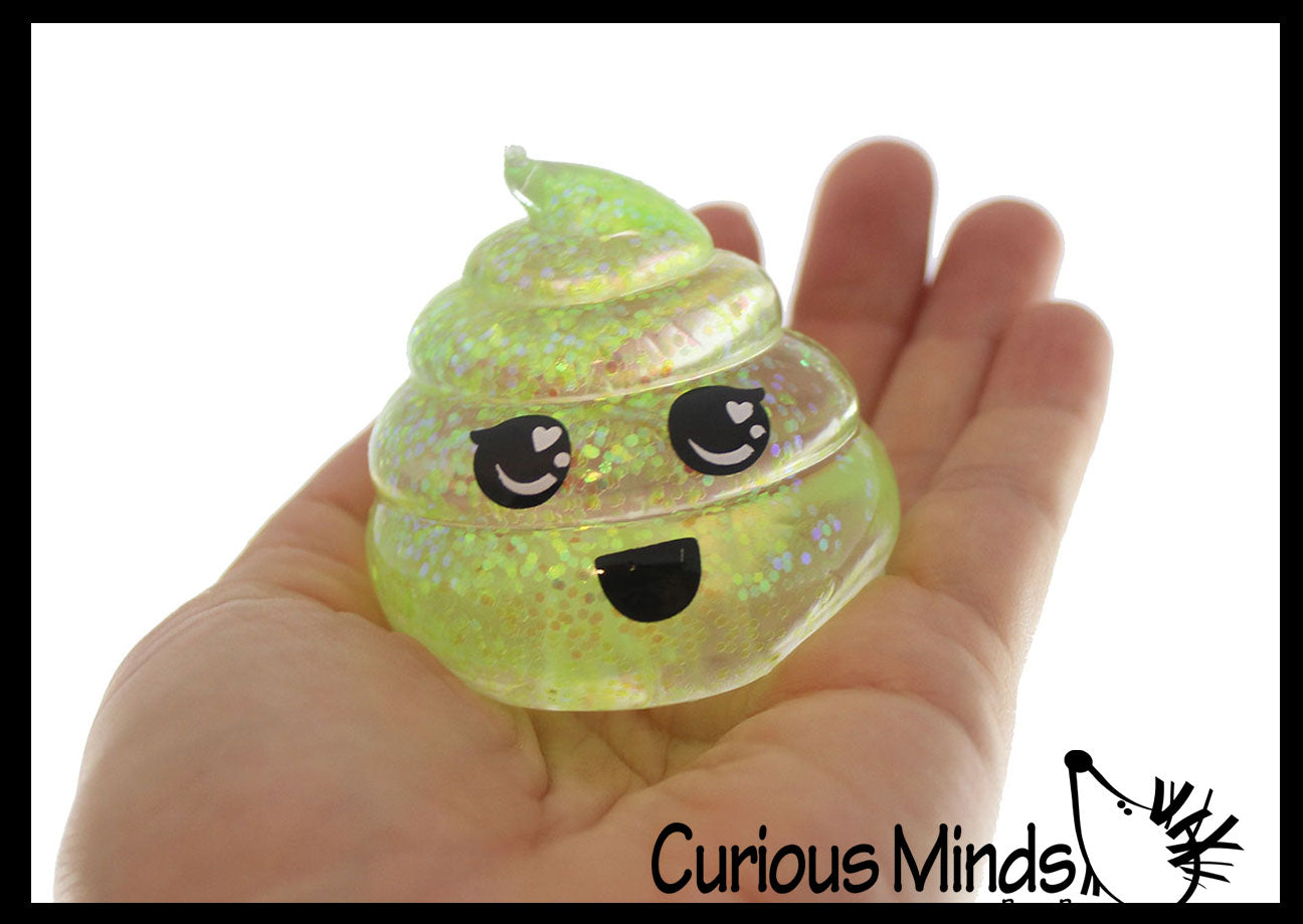 The poop shape style of the sugar ball is so fun to play with. These soft and flexible toys look like little piles of poo. These little toys can be stretched gently. Turds are 2.5" tall, 2" long, and 2" thick and is wrapped in clear plastic. The poop comes in 4 different colors with sparkly glitter inside including blue, green, pink, and purple. This is a very fun stress toy that is not only calming, but it also helps build hand and finger muscles and bilateral coordination. It is beyond amazing and has a super soft dough feel. You can poke and pinch it and it will retain its shape, then slowly ooze back into a cube just like a slow rise squishy would.