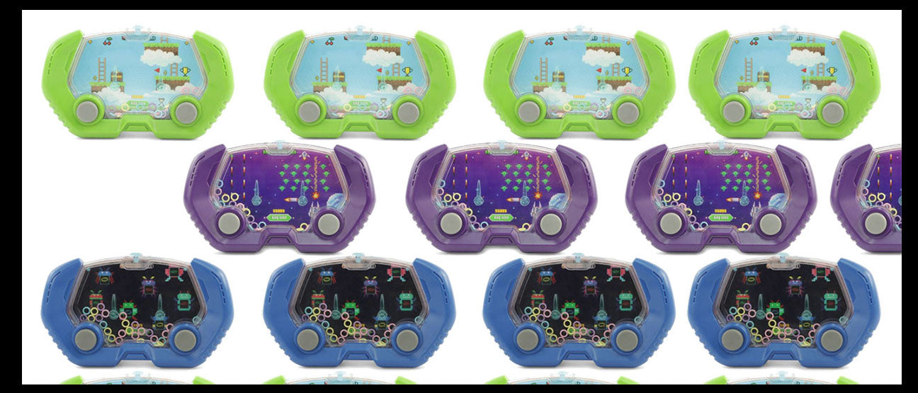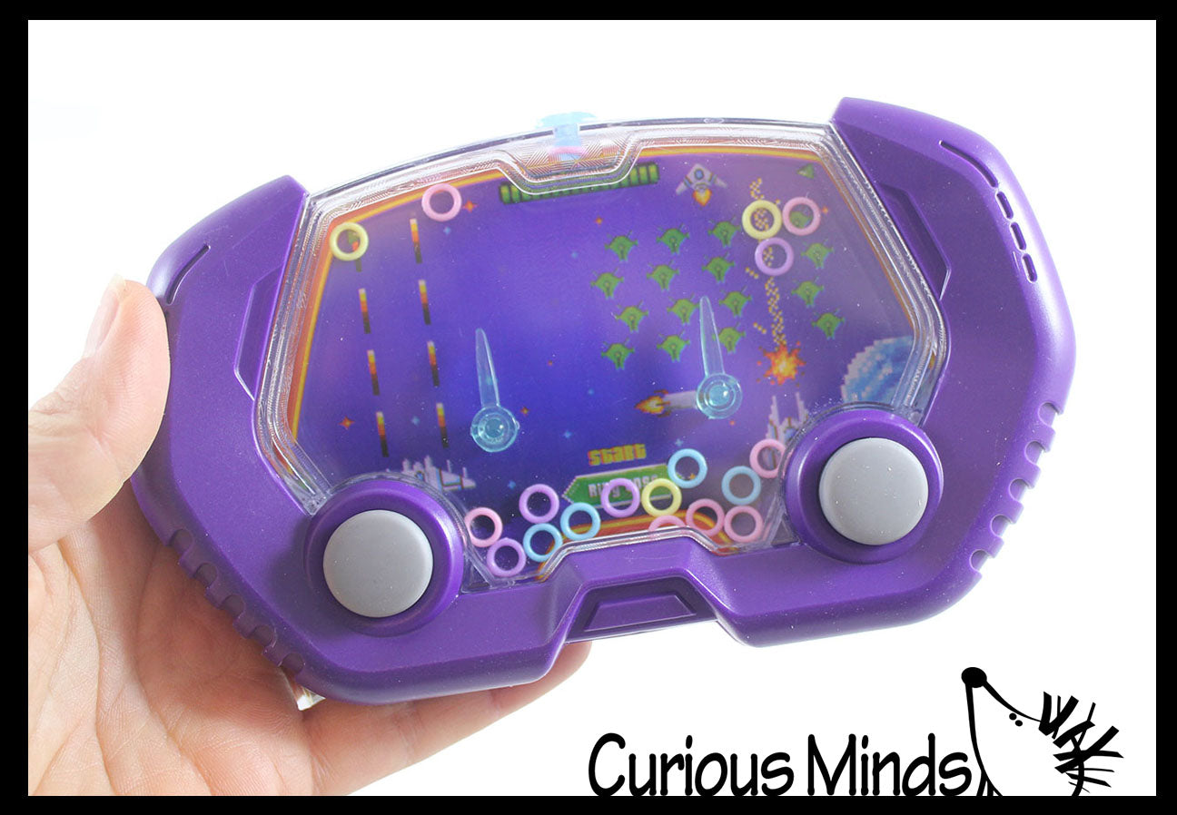 Retro Water Games - Push Button to Put Rings on Pegs - Hand Held Travel Arcade Game - Classic Video Game Themes