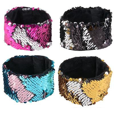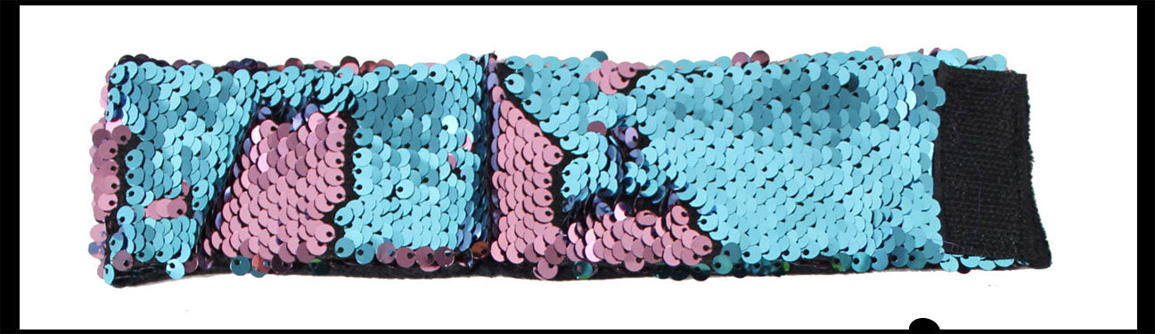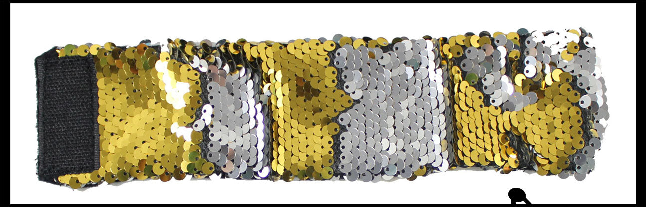 - Bracelet is covered with 2-toned sequins, one color on the front and a different color on the back.