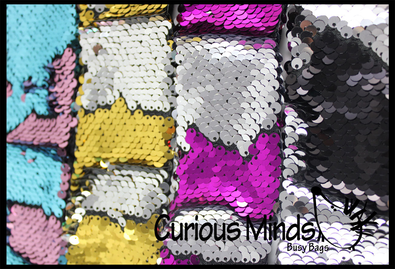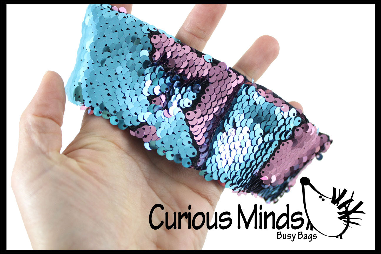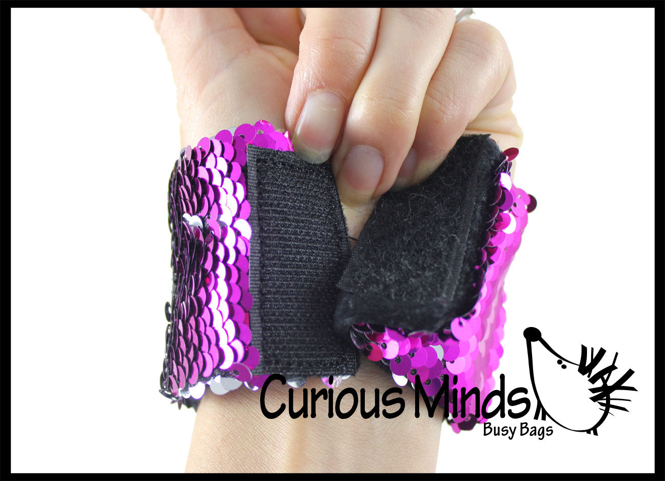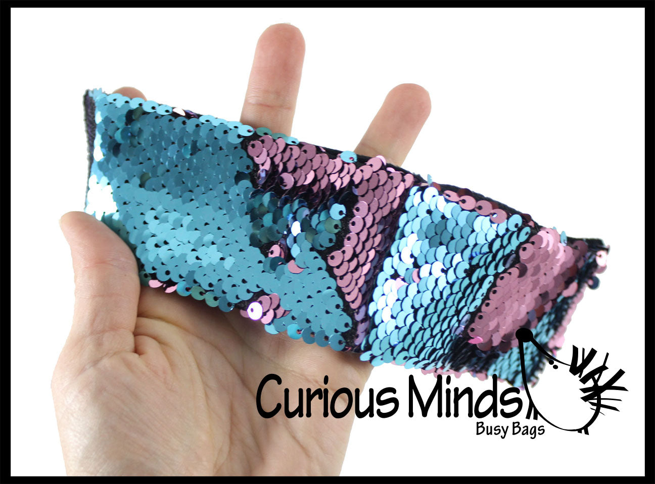 LAST CHANCE - LIMITED STOCK - - Wide Bracelet with Mermaid 2 Color Reversible Sequin Scales - Cuff Jewelry Sensory Fidget Toy