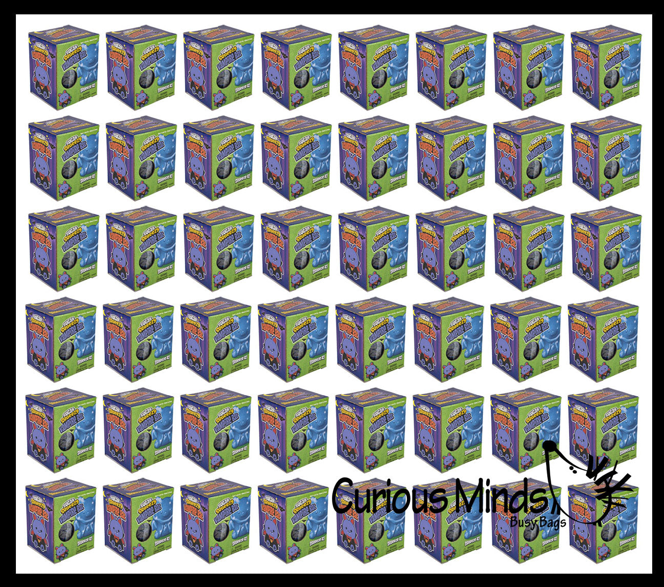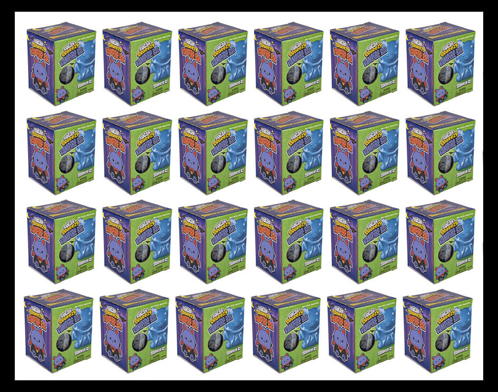 The cool sugar balls now come in spooky jumbo vampire bat shapes! The bat sugar ball comes in a dark blueish purple color with a sparkling shimmering glitter inside. They measure 4" x 3.5 x 25". (Box is 4" x 3.5"x 2.75"). This is a very fun stress toy that is not only calming, but it also helps build hand and finger muscles and bilateral coordination. It is beyond amazing and has a super soft dough feel. You can poke and pinch it and it will retain its shape, then slowly ooze back into a ball just like a slow rise squishy would. These are perfect spring Easter party favors and basket gifts.