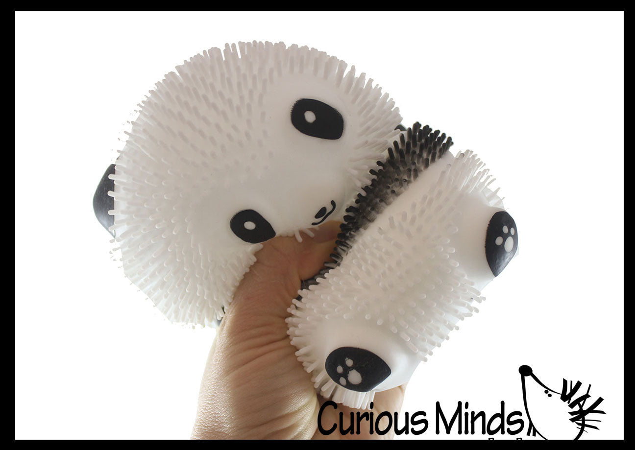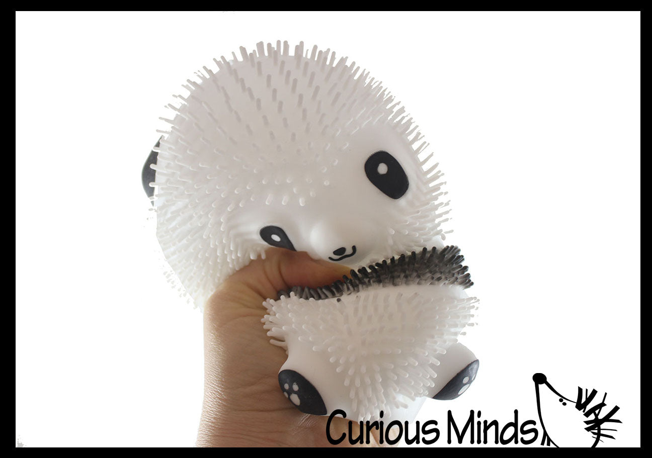 This adorable panda bear shaped puffer ball has soft rubber spikes and a super-squeezable texture. When you squeeze these puffer balls, an air bubble emerges from the interior. For ages 3+.