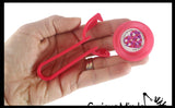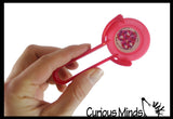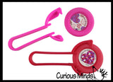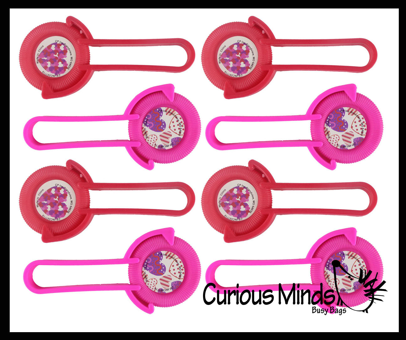 This is a fun twist on regular Valentine's day cards. Kids can pass out these fun disc shooter toys during their classroom exchange. Disc shooters are a super fun cheap novelty toy that kids love. Pop the disc into the handle and give it a squeeze to make it go flying.