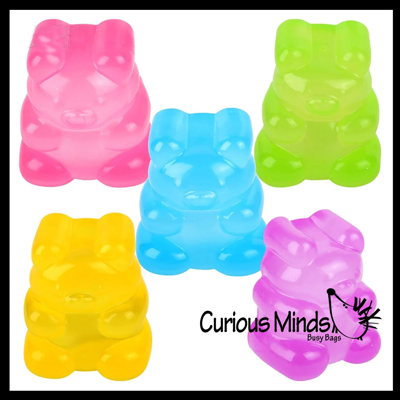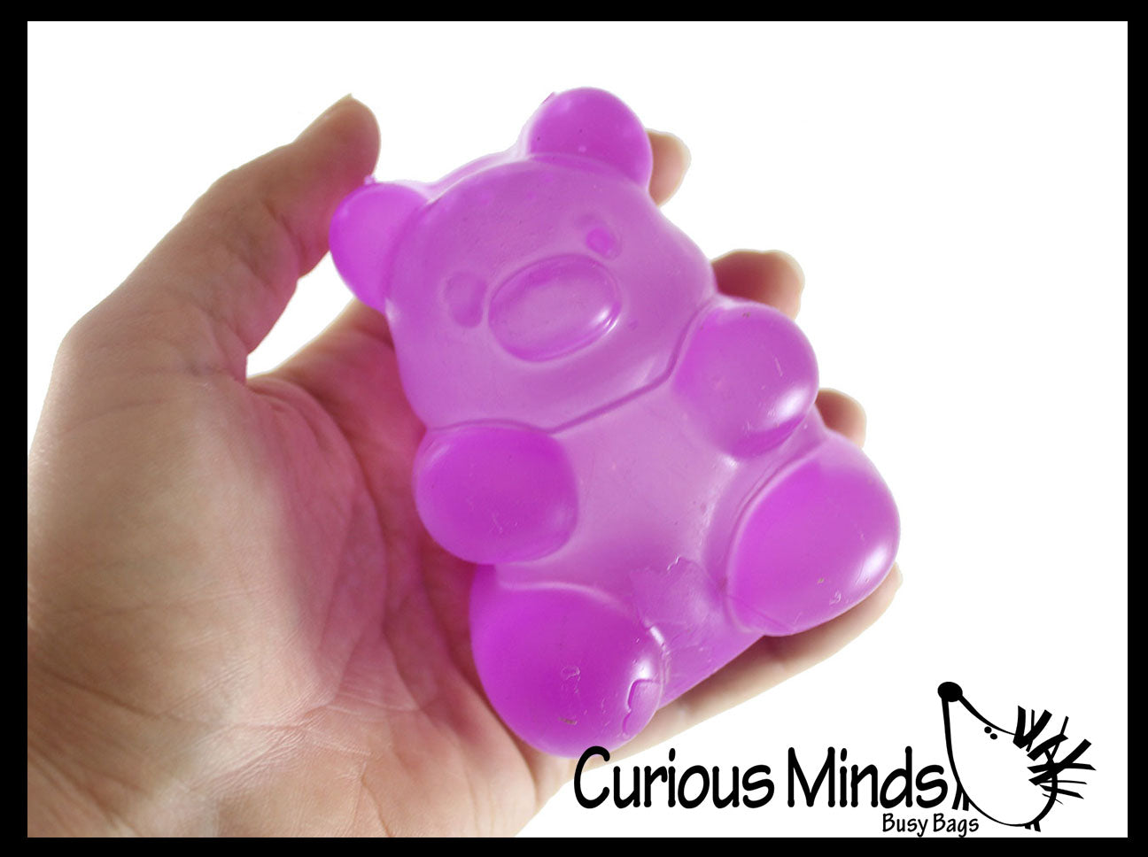 These gummy bear stress balls are so fun to play with. These soft and flexible toys look like and feel like the gummy bear candy. These little toys can be stretched gently. Bears are 4" x 2.5" x 2". and is wrapped in a box. The ball comes in 5 different colors. This is a very fun stress toy that is not only calming, but it also helps build hand and finger muscles and bilateral coordination. It is beyond amazing and has a super soft dough feel. You can poke and pinch it and it will retain its shape, then slowly ooze back into a cube just like a slow rise squishy would.