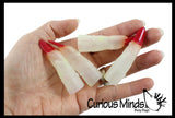 - 12 Lip Whistles - These red lips are plastic whistles that make a super fun sound when you blow into them. They are easy to keep in your lips making you look silly with big red lips and vampire fangs. This is a kid favorite. Whistles are 2.5" x 1.5".