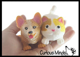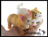Set of 2 sand filled stretchy pet fidgets. Includes 1 random color cat and one corgi. These cute pet stress toy is so fun to manipulate. The animals are filled with a fine granular almost sand-like filling surrounded by a soft and stretchy silicone shell. The critter is super soft and slightly weighted and has a sand filling inside that add to the sensory experience. The little balls make a quiet crunch like sound when they are squeezed. This makes the cat irresistible since you can squeeze, poke, pull, stretch and bend it! Smash it flat and bring it back to its original shape.