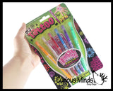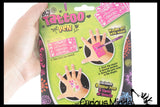 This is a set of 6 different temporary tattoo gel pens. The set comes with stencils that can be used to draw different pictures and tattoos on your skin! This is a fun and creative craft for kids. Pens are 5.75". Ages 6+.