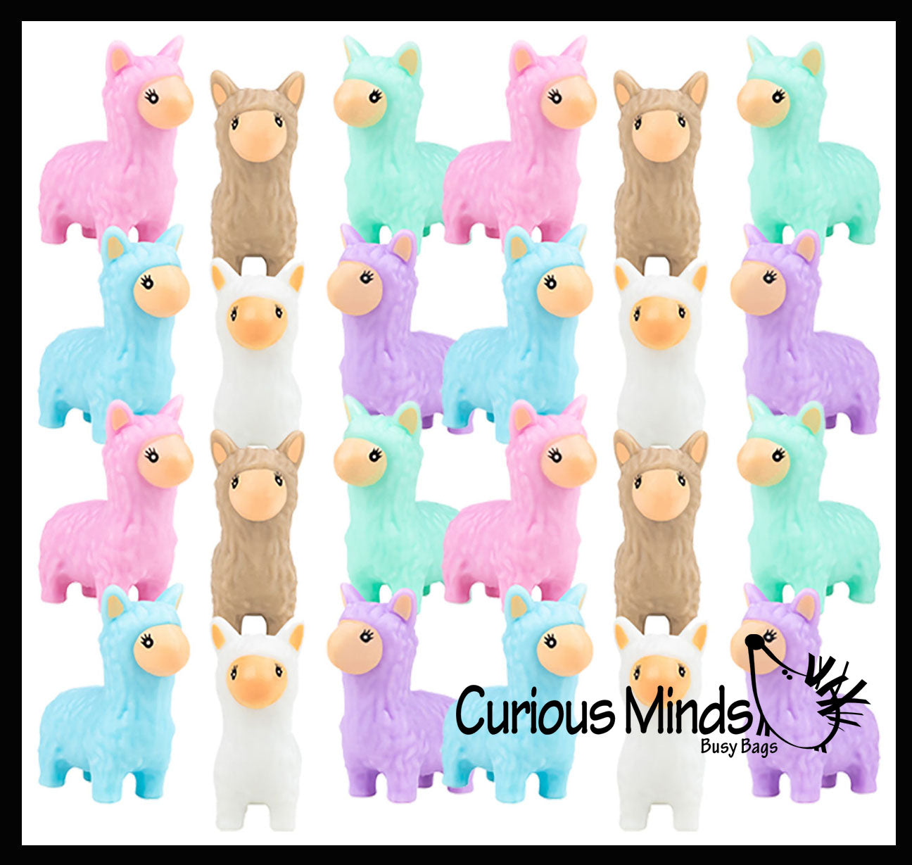 These mini alpaca animals are cute little soft plastic figurines. They are a fun little toys for pretend play. Size: 1" tall x 1". These make a perfect addition to any Easter basket, party goodie bag, or they would fit perfectly in Easter eggs for an egg hunt! Comes in 6 colors.