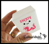 Kids love these little fast food shaped collectable characters. They are about 2" tall and 1.5" wide. The junk foods come in a selection of take out Chinese boxes, burgers, fries, hot dogs, pizza, sushi, taco, popcorn, milkshakes, and drumsticks. These adorable figurines make great birthday goodie bag fillers or popular treasure box prizes or classroom rewards. Hard plastic and hollow.