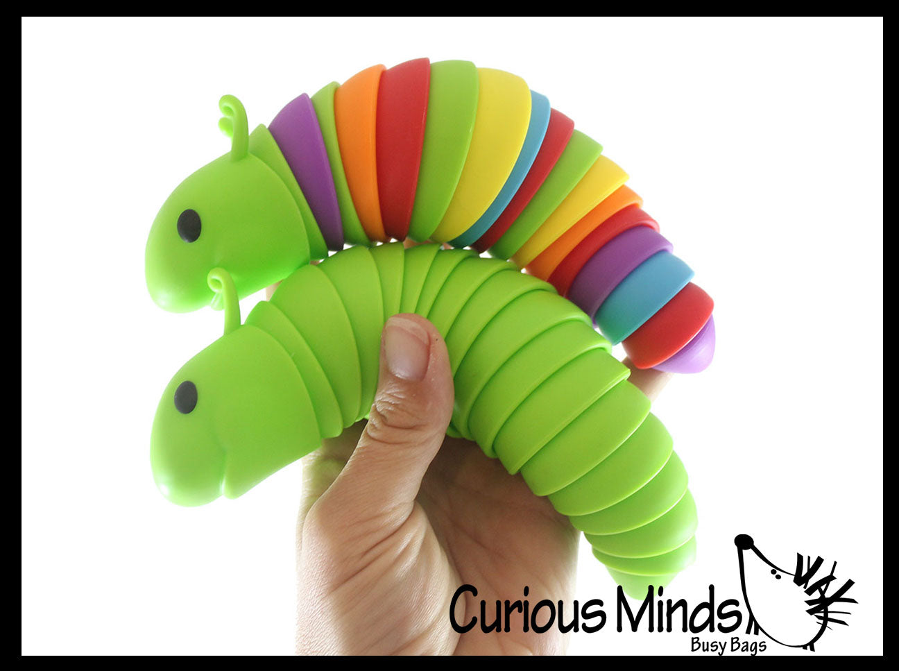 Fidget Wiggle Caterpillar - Large Articulated Jointed Moving Slug Toy - Unique Rainbow
