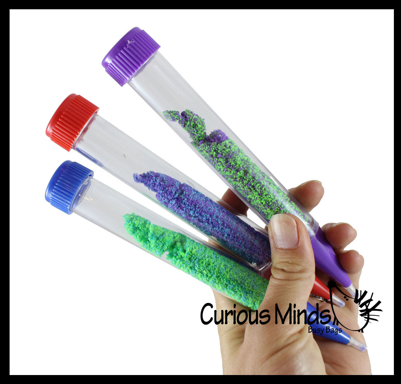 This fidget is a pen and fidget in one! The pen contains an empty capsule that has soft flowing foam compound inside. You can tip the pen to and watch as it slowly falls to the bottom. Tip it again to put it back in motion. This pen is fun to be played with making it a discreet fidget for the school or office. You can also unscrew the cap to play with the compound!
