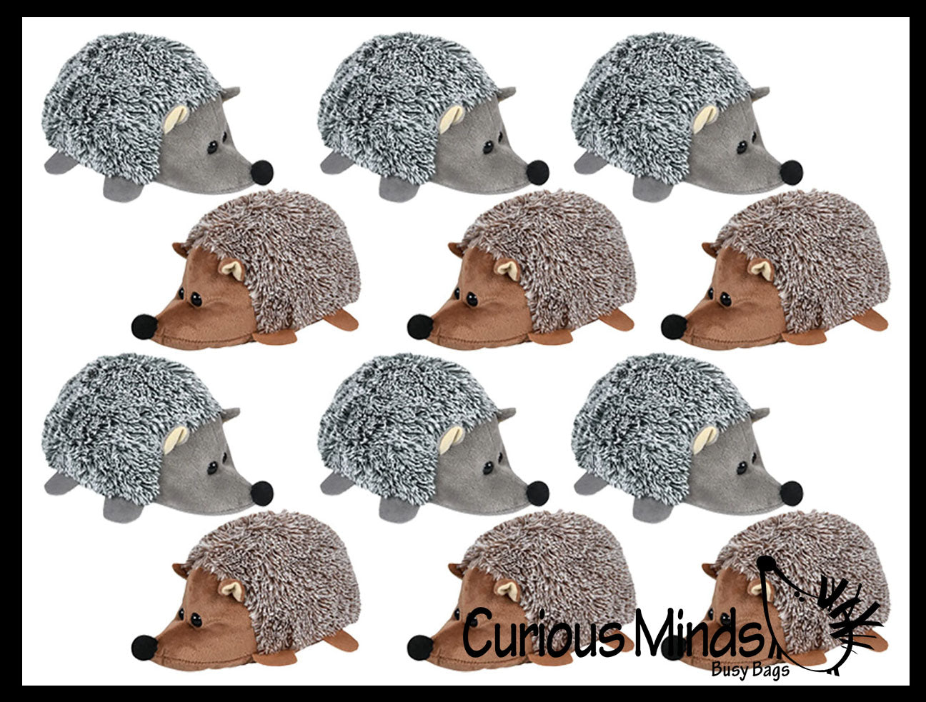 This plush toy is an adorable and soft hedgehog stuffie. The hedgehog is soft and filled with plush filling, and has a soft and hairy material for the spikes. The hedgehog comes in 2 sizes, and 2 colors (brown and grey).