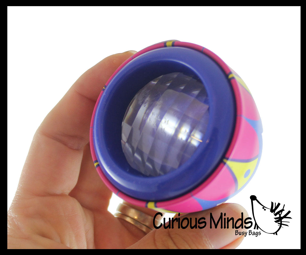 See the weird world through the eye of an insect with our classic Fly Eye Kaleidoscope! It’s amazing how our little buggy friends see many images at one time. Our classic Tin Kaleidoscope has a multi-sided prism lens like the eye of a bee or a bug. Rotate the tin and plastic monocle to create explosions of color and wild patterns. Metal Kaleidoscope is 2.25" long and 2" wide.  Random colors.