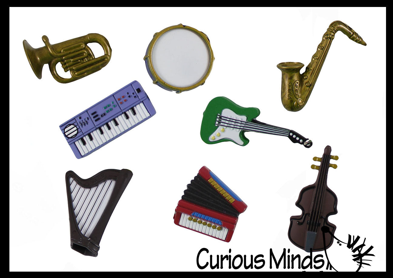 These keychains are shaped as popular musical instruments and are a perfect gift for any band or orchestra musician.  They are about 4" long and includes harp, violin, electric guitar, accordion, saxophone, keyboard, drum, and French horn.