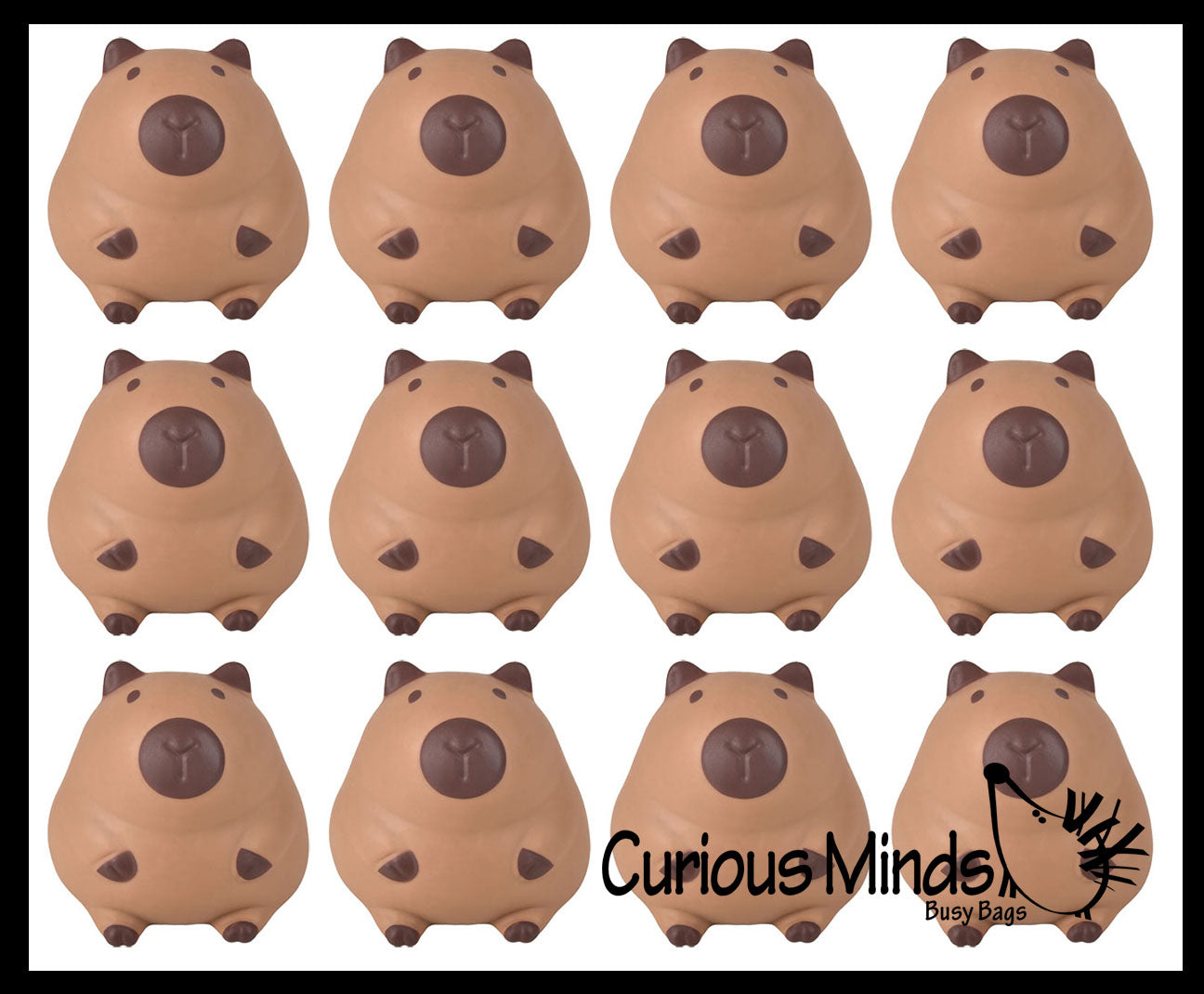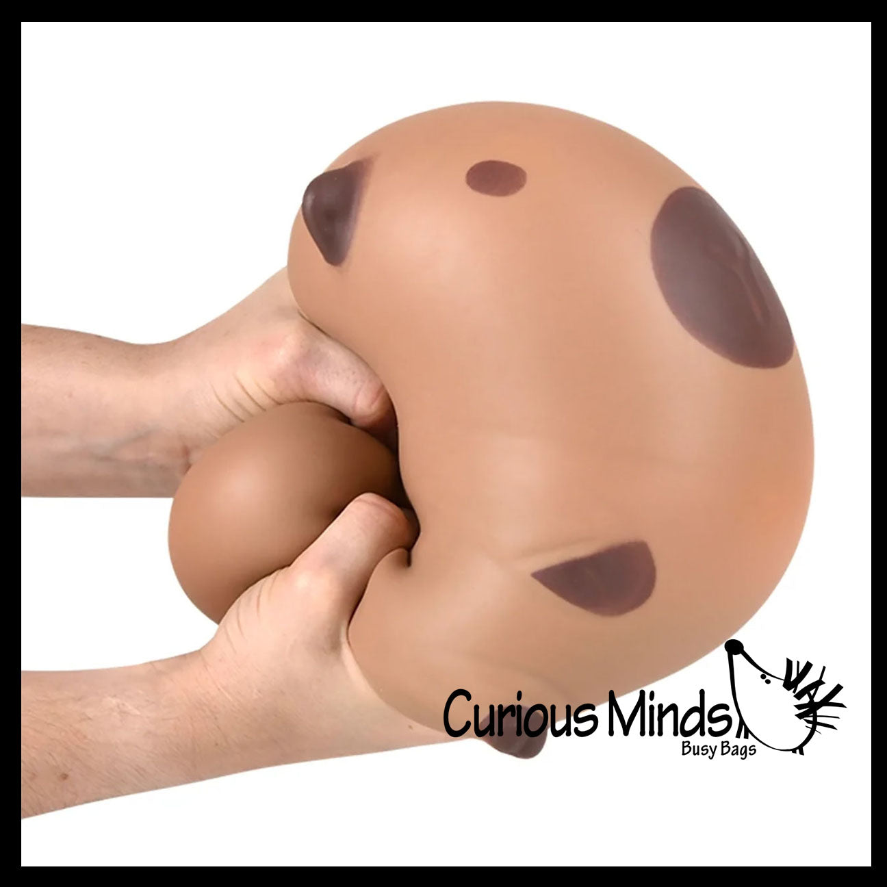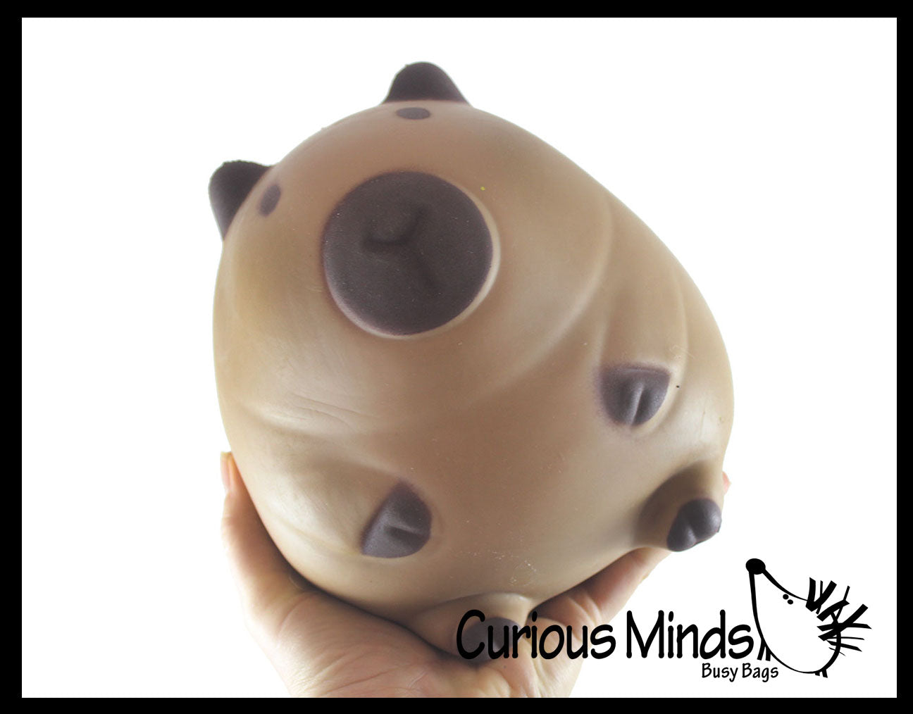 This jumbo sized stress ball is shaped like a capybara. This animal is not only calming, but it also helps build hand and finger muscles and bilateral coordination. The the large rodent is 40oz of a unique soft foam thick doh filling that feels like bread doh. It has a super-soft skin. The capybara is 5.75" x 6" x 6", and comes in a clear bag. This thing is huge, it weighs over 2 pounds!