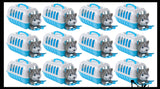 This pretend play set is an adorable pet carrier that comes with a husky puppy dog. The dog is made from rubber so it is not a hard plastic.  The head of the dog turns so you can make him look in different directions.  The dog and cage are waterproof so it can be a fun toy to play with in the bath.  Each soft dog is 6" x 4" x 3".  Each pet comes with its own plastic carrying case which is 7.5" x 5" x 5". Each case has a handle at the top and a paw print door that swings open and closed.  Perfect gift for any pooch loving, vet inspiring child.