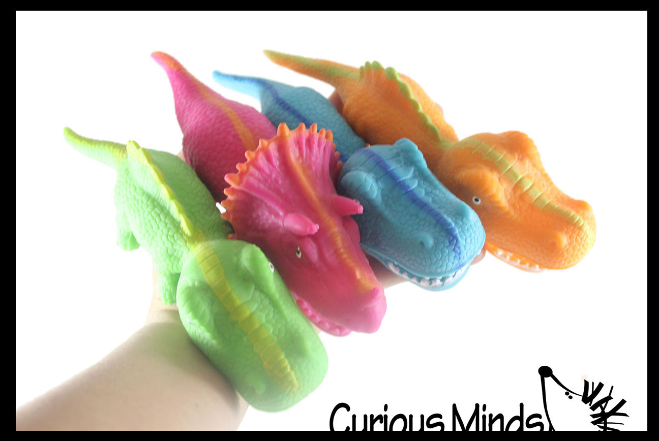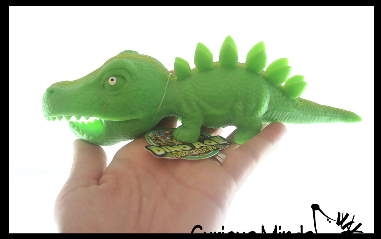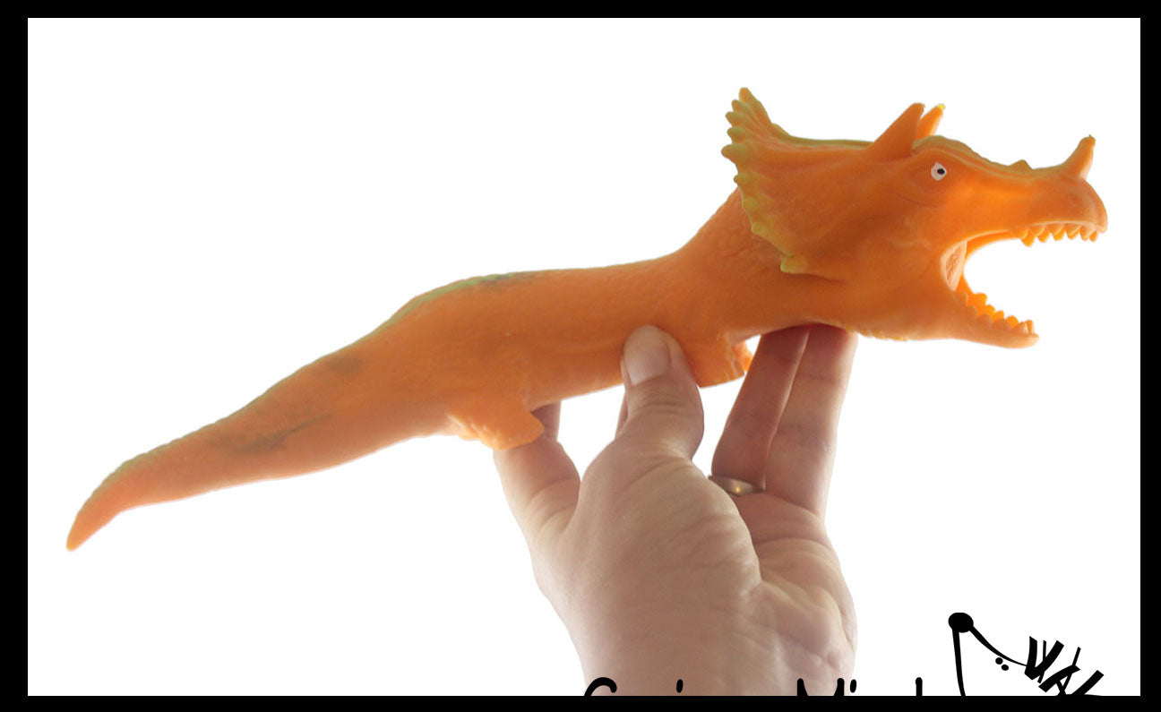 This dinosaur stress toy is so fun to manipulate. This dino is filled with a fine granular filling surrounded by a soft and stretchy silicone shell. This makes the prehistoric reptile irresistible since you can squeeze, poke, pull, stretch and bend it! Smash it flat and roll it back to its original shape. 8.5" x 3" x 2". Comes in 4 different dinosaur breeds and 4 bright colors.
