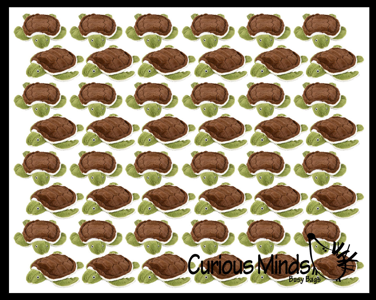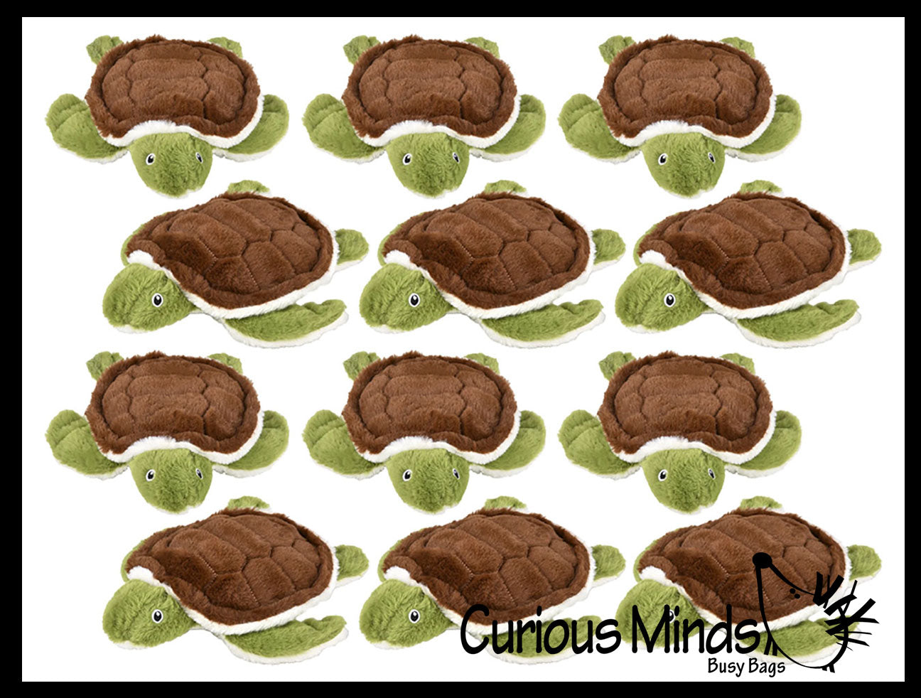 This adorable plush stuffed toy is a sea turtle. It is 9" wide, 9" long, and 3" tall. This is simply a fun little stuffed animal for kids who like ocean animals. This is Earth safe with no plastic, so it has stitched eyes.