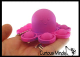 Soft Reversible Octopus - This fidget toy is a cute octopus that has soft pop-able bubble buttons on each tentacle. Each octopi is made of a soft and flexible silicone that can be flipped inside out to reveal a different happy or sad face, and has 8-10 bubbles. Octopus is 3.25" x 1.5". (Random Color).