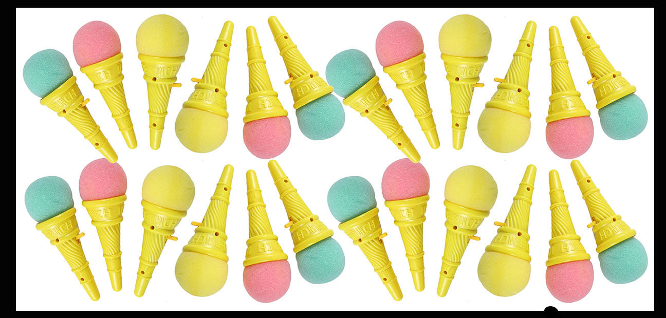 This classic novelty toy is a vintage toy that we loved as kids. It is a ice cream cone shaped ball shooter gun. Pop the foam ball onto the top of the cone, and press the trigger to shoot it back out. The foam ice cream ball is attached by a string so you can pop it back on and shoot over and over again. When I was a kid I cut the string off so the foam ball shot across the room!
