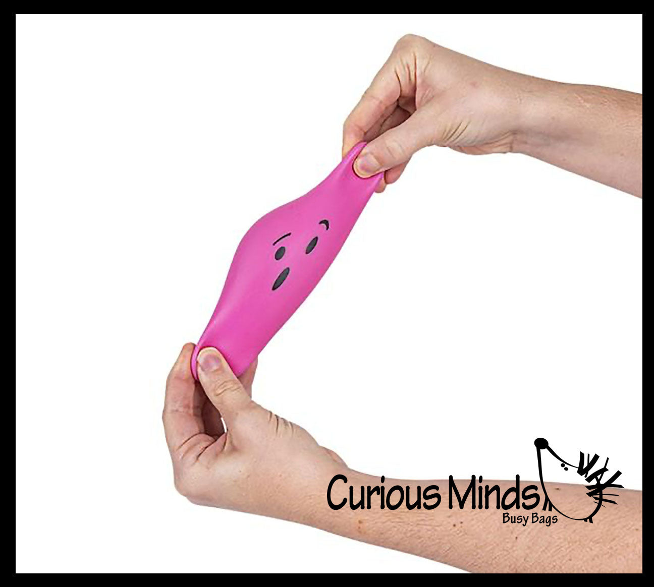 These soft and fluffy stress balls are a fun twist on regular Valentine's day exchange cards.  Kids can pass out these adorable hearts during their classroom exchange. Your child can sign the back or bottom using permanent marker or simply hand them out to their friends.  Fluff/fiber filled hearts are 2.75" x 2.5" x 2".  They are filled with soft fabric-like fiber and a little bit of water inside its flexible skin.  When you squeeze the ball the fiber filling squishes around. These have a very soft and squishy feel, it is very easy to squish.