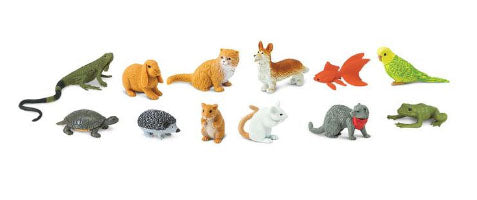 ***** Pets Animal Figurine Set includes - hedgehog, iguana, mouse, parakeet, cat, dog, goldfish, rabbit, turtle, hamster, ferret and frog.
